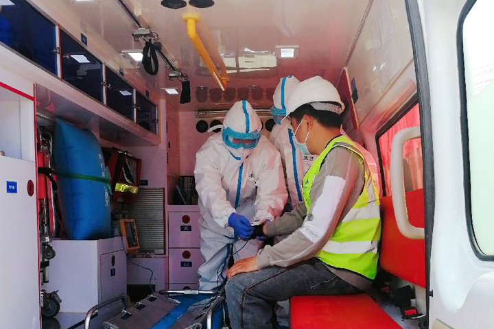 救護(hù)車(chē)閃著紅燈呼嘯而來(lái),醫(yī)護(hù)人員對(duì)疑似感染人員進(jìn)行了初步的體溫、血氧、血壓等檢查后,將其送到鄂鋼醫(yī)院進(jìn)行詳細(xì)檢查。
