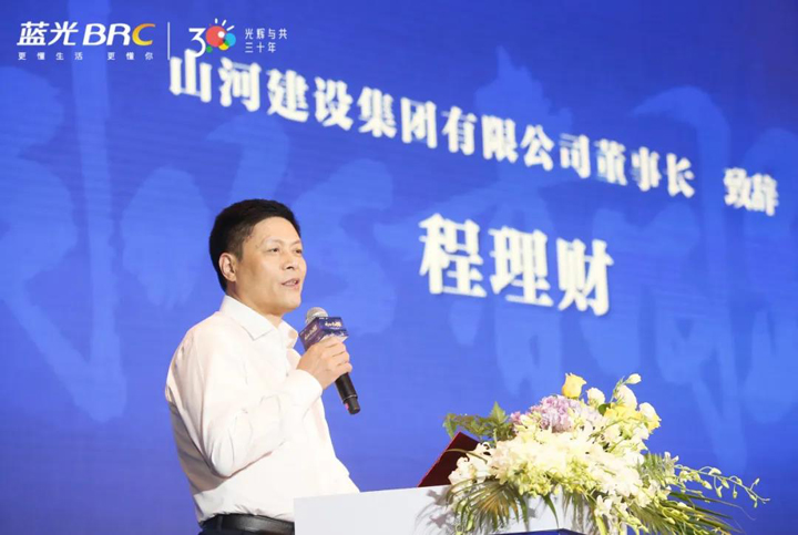 董事長程理財作為核心戰略合作伙伴代表向大會致辭。他說,集團和藍光在5個區域市場進行了廣泛的合作,合作項目總面積逾100萬平方米,雙方在合作過程中結下了深厚的友誼。用匠心打造精品,以精品樹立典范,是我們共同的追求。山河集團將與藍光集團在穩定合作的基礎上,延伸合作領域,擴大合作范圍,用更多優質項目推動行業高質量發展。