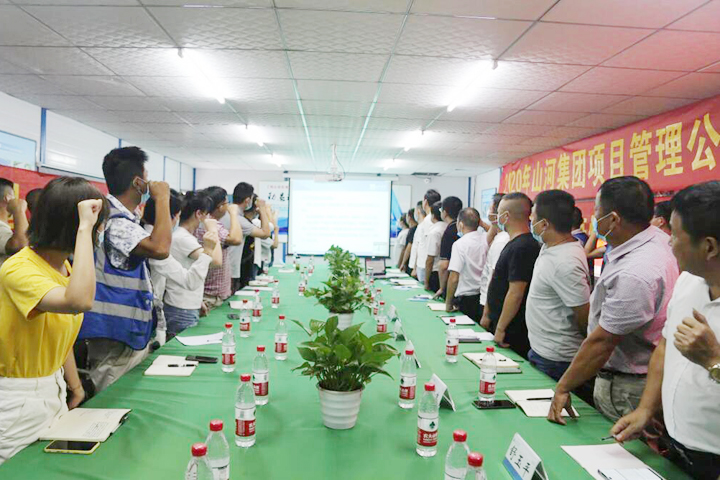 接下來,參會人員全體起立,高舉右手進行宣誓,承諾認真履行管理職責,堅守職業道德底線,用自己的智慧和努力服務企業,筑就山河品質。