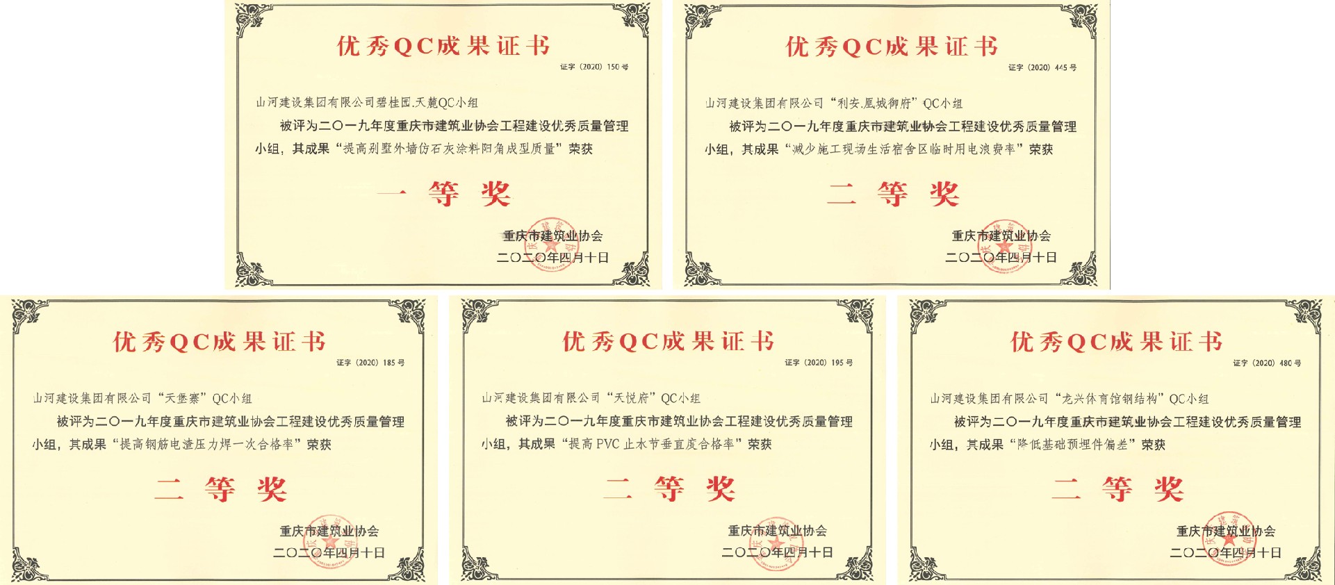 從重慶市建筑業協會獲悉,在2019年度工程建設優秀質量管理小組評審活動中,山河建設集團西南公司5項QC成果被評為優秀QC成果,其中一等獎1項、二等獎4項。