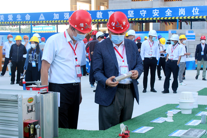 現場質量安全觀摩環節,與會代表先后參觀了VR安全體驗館、工法樣板、主體結構樣板、屋面樣板、抹灰樣板間等多個展區,對現場工藝做法進行了互動交流。在VR安全體驗館,大家佩戴VR設備,通過虛擬的場景模擬體驗,身臨其境地感受了施工現場的“危險時刻”。