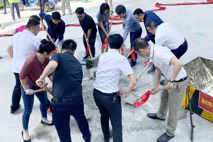儀式上,各方代表共同揮動(dòng)鐵鍬,完成最后一方混凝土澆筑,標(biāo)志著該項(xiàng)目主體工程正式封頂,為下一階段的施工打下良好基礎(chǔ)。