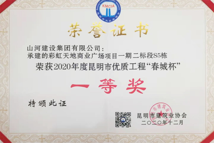 [云南公司]山河集團云南(廣西)公司遠洋彩虹天地商業廣場項目喜獲“春城杯”一等獎