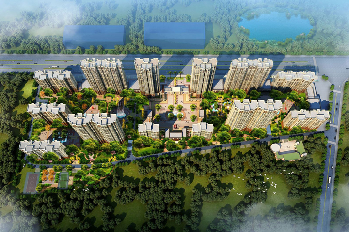 該項目位于武漢市白沙洲大道與八坦路交匯處,總建筑面積約36.29萬平方米,包括4棟地上46層、4棟地上32層、1棟地上42層、4棟地上30層、1棟地上33層住宅樓、1棟地上4層鄰里中心、1棟地上3層幼兒園、1棟地上一層開閉所;地下室框架地下2層。