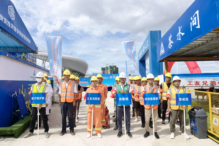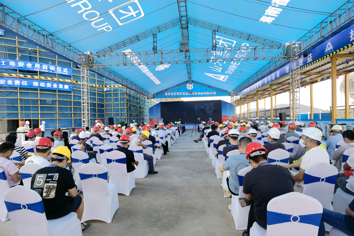 6月9日,山河建設集團海南公司承建的萬寧紅星美凱龍三標段項目施工現場人頭攢動,萬寧市2021年安全生產月啟動儀式暨安全應急演練現場觀摩會在這里舉行。萬寧市住房和城鄉建設局局長陳云鋒,建設工程質量安全監督站站長嚴云,安委辦主任、應急管理局局長林靖等領導出席活動,海南公司常務副總經理程智、工程團隊、項目管理人員及建設單位、監理單位、萬寧市各在建項目代表等300余人參加了活動。