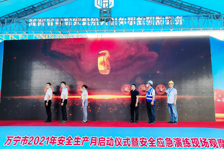 隨后,出席啟動儀式的領導依次上臺,共同觸摸大屏幕,宣告萬寧市安全生產月活動正式啟動,拉開了全市安全生產月系列活動的序幕。