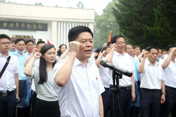 上午9時許,全體黨員及發展對象抵達位于團風縣杜皮鄉的黃岡革命烈士陵園——為建立鄂東革命根據地英勇犧牲的烈士們長眠的地方。團風縣人大常委會黨組書記、主任丁永忠,縣委常委、宣傳部長董曉燕等領導和大家一起參加了紀念活動。
