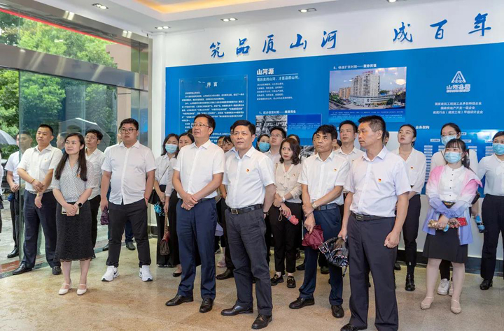 總承包(黃岡)公司所在地是集團1999年改制后建起的第一座辦公樓,是山河人夢想起飛的地方,在企業發展史上有著舉足輕重的意義。在講解員的帶領下,參觀人員再次回顧了集團50余年波瀾壯闊的發展歷程。3次升級、4次搬遷、5次更名、14家區域公司、400個在建項目、1000項行業榮譽,創業的艱辛歷歷在目,發展的成果令人心潮澎湃,見證了山河的光輝歲月。