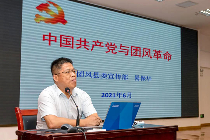 隨后,團風縣委宣傳部副部長易保華講授《中國共產黨與團風革命》的專題黨課。團風自古以來就是兵家必爭之地,這片紅色的土地上,走出了一大批老一輩革命家和名人志士,誕生了全國最早的農村基層黨組織,點燃了黃岡革命的火種。老區人民勇當先鋒,敢為人先,“堅持28年紅旗不倒”,為中國革命做出了不可磨滅的貢獻。