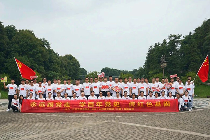 為慶祝中國共產黨成立100周年,6月26日,山河建設集團江西公司組織機關黨員員工70余人來到南昌灣里金峽谷風景區,開展了以“永遠跟黨走、學百年黨史、傳紅色基因”為主題的紅色團建拓展活動。