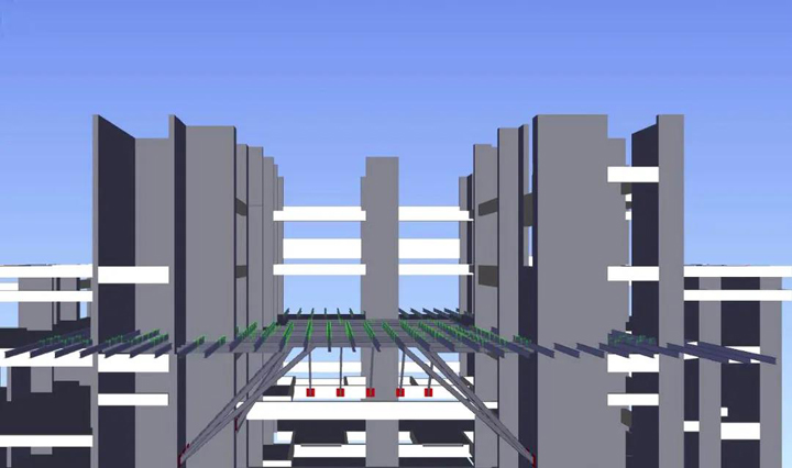 凌空大跨度懸挑結(jié)構(gòu)是目前較為流行的建筑結(jié)構(gòu)類型之一,帶來強(qiáng)烈視覺沖擊力的同時,也給工程施工帶來了巨大挑戰(zhàn)。由于跨度大、荷載復(fù)雜,對施工平臺的要求較高,高空作業(yè)的安全隱患也隨之增加。河南公司工程團(tuán)隊在平頂山恒大珺睿府項(xiàng)目施工中,以屋面花架施工為依托,針對凹形凌空大跨度懸挑結(jié)構(gòu)(凹形兩側(cè)為樓梯間+電梯井形式)的施工進(jìn)行課題攻關(guān),總結(jié)出了凹形凌空大跨度懸挑結(jié)構(gòu)施工工法。