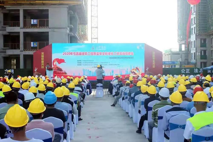 屯昌“林溪緣”項目部堅持圍繞生產抓黨建,抓好黨建促生產,以打造優質隊伍、優質工程為目標,黨員干部帶頭沖在前、干在先,高標準、高質量、高效率抓好各項工作落實,如期完成節點施工任務,受到主管部門和業主的一致好評。2020年11月13日,該項目承辦了屯昌縣建筑工程質量安全標準化工地現場觀摩會,展示了“山河造”的品質實力。