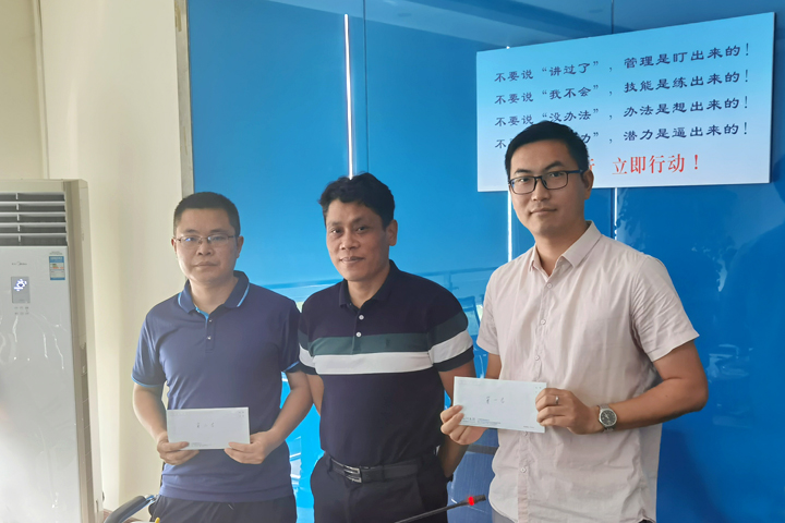 總經(jīng)理丁賢林向受到表彰的美的·萬麓府、藍光未來城項目代表頒發(fā)了獎金,勉勵優(yōu)秀管理團隊再接再厲,爭取更大成績。丁賢林在總結講話中說,上半年,工程管理團隊、項目管理團隊付出了巨大的努力,工程管理水平得到了進一步提高。全體人員要繼續(xù)拉滿弓繃緊弦,全面加強質(zhì)量管理和安全管理,嚴格控制每道工序的施工,嚴守安全生產(chǎn)十條“紅線”,實現(xiàn)工程管理全過程管控。