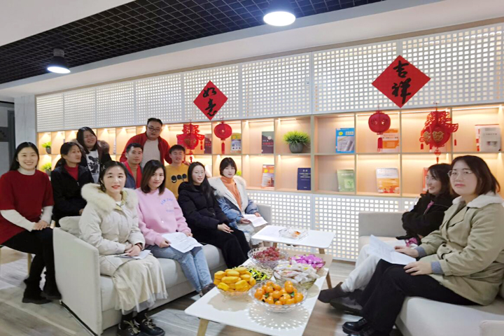 讀書分享是云南公司長期開展的一項文化活動,受到員工的歡迎和積極參與。為了凸顯新年的喜慶氛圍,公司閱讀區貼上“吉祥”“如意”、掛上中國結,部分員工特意穿上紅外套、戴上紅圍巾,表達著對新年的美好期盼。