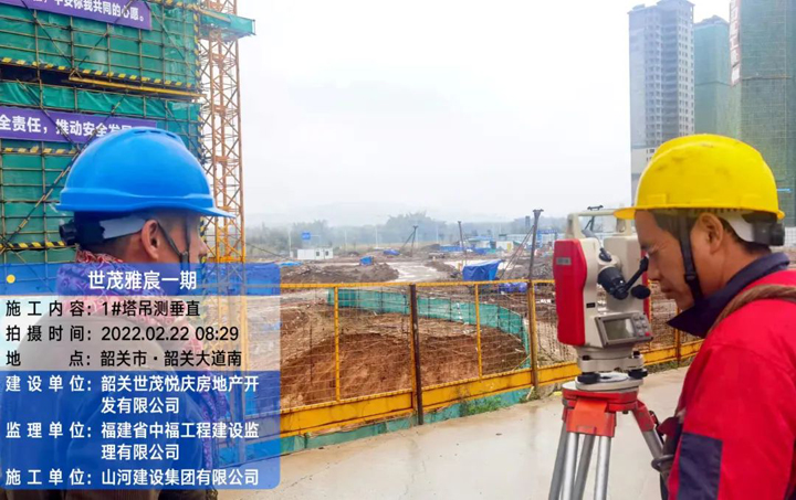 韶關(guān)世貿(mào)雅宸一期項目技術(shù)人員在測量塔吊垂直度