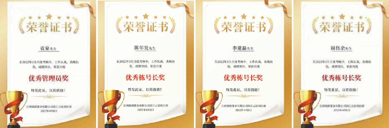 考評結束后,錦潤置業對濱江云宸項目的安全質量、進度落實情況進行了總結分析,并對現場管理人員進行了成績排名和表彰。其中,袁泉榮獲“優秀管理員獎”,陳年發、李建磊、周偉余榮獲“優秀棟號長獎”。