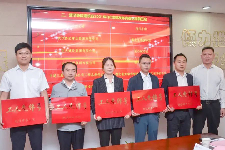 5月19日,武漢建筑業2021年度勞動生產優秀班組和優秀個人授牌儀式舉行。會上,武漢市總工會向武漢地區建筑業2021年度QC成果發布競賽活動前五名頒授武漢市工人先鋒號,山河集團總承包公司創意QC小組喜獲殊榮。據悉,此次競賽活動中,創意QC小組申報的《高空超長懸挑結構型鋼操作平臺施工技術創新》成果獲第三名(銀獎)。
