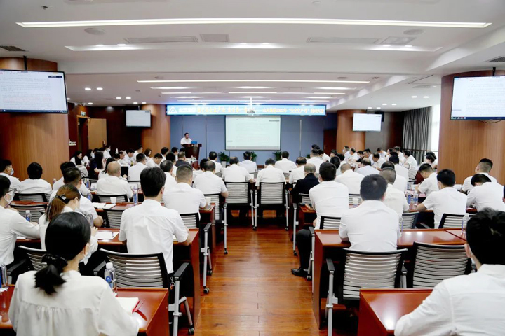 集團董事長程理財,控股集團、建設集團部門總經理及以上人員、工程團隊,總承包公司部門經理及以上人員、工程團隊、項目經理,在漢分子公司負責人現場參會,各區域公司總經理、經營班子、工程團隊、項目經理在分會場線上參會。建設集團副總裁兼總工程師程秋明主持大會。