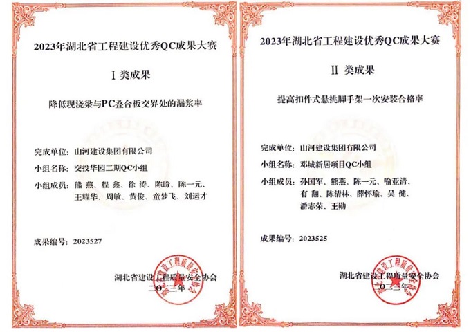 山河集團兩項QC成果獲評2023年湖北省工程建設優秀成果