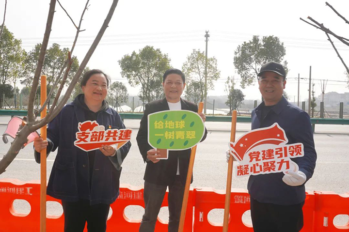 堅持紅色引領,助力綠色發展,3月12日,在第46個植樹節到來之際,湖北省建設工程質量安全協會黨支部、黃岡市城市建設有限公司機關黨支部、湖北筑河建筑工程有限公司黨支部聯合開展“聚力黨建紅 共護生態綠”義務植樹主題黨日活動。