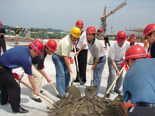 參加該工程封頂儀式的有:甲方咸寧學院院長夏行風、副院長趙學純、咸寧市建筑工程管理站相關領導、集團公司副總經理王平、總工程師程秋明及工程部管理人員。在慶祝封頂之余,工程部一行還對該項目進行了08年度二季度的安全質量文明施工大檢查。其質量及安全文明施工水平優良,受到甲方及咸寧各級領導的廣泛好評,已被咸寧市建管部門定點為市建筑安全質量文明施工觀摩工程。