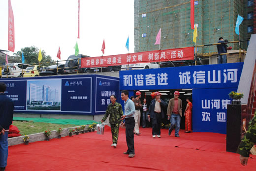 27日上午,武漢市政府、漢陽區區委、武漢市建委、市建管辦等主管部門領導和嘉賓,以及各大媒體共500余人參加了此次大會。他們在現場看到了一個建設工程安全和文明施工都非常到位的項目部。在這里,工地上看不見一根隨處亂放的鋼管;生活區處處干凈整潔,工人師傅在溫馨如家的環境中休閑娛樂;辦公室里各種文件資料分門別類擺放得整整齊齊……而這些不俗的表現,也是行政主管單位為什么會把現場觀摩會放在山河集團項目部舉行的原因。