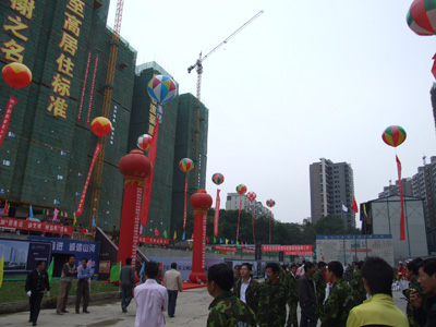 秋風送爽、彩旗飄揚,漢陽區2008年度建設工程安全質量文明施工現場觀摩會于9月27日在我公司香榭琴臺項目經理部隆重召開。出席此次會議的領導有:武漢市委副秘書長唐昌海;漢陽區委常委、副書記吳明益;漢陽區委常委、副區長張 軍;漢陽區委常委、宣傳部長張本滿;漢陽區人大副主任朱時木;漢陽區政協副主席馮從捌;武漢市建委建管辦副主任賈巾戈;武漢新區指揮部工程建設部部長賴成林;武漢市建設工程安全站站長邱濟彪;武漢市建設工程市場站副站長王偉震;武漢市建設工程質監站副處長李克平;漢陽區文明委主任甘瓊;漢陽區安監局局長范俊華;漢陽區建設局黨委書記陳雙喜;漢陽區建設局局長熊成明;漢陽區建設局副局長、建管站站長王輝友等。出席此次會議的還有:各區建管部門領導、漢陽區在建工程的建設、施工、監理單位代表共計五百余人參加了本次活動。