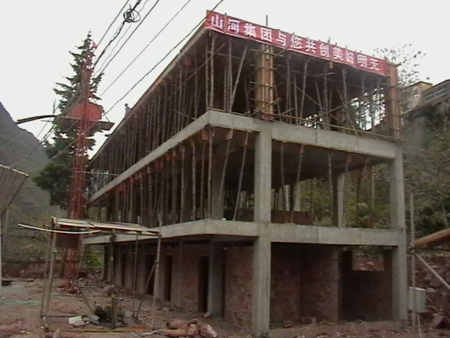 我公司承建的四川省漢源縣大堰鄉(xiāng)中心小學(xué)工程經(jīng)過兩個(gè)多月的緊張有序施工,已經(jīng)初見雛形。宿舍樓主體結(jié)構(gòu)已經(jīng)封頂,一層填充墻砌筑完成;教學(xué)樓三層主體結(jié)構(gòu)正在施工,預(yù)計(jì)本月23日主體可以封頂;綜合樓施工至一層結(jié)構(gòu)。整個(gè)工程計(jì)劃將于2008年12月28日竣工。