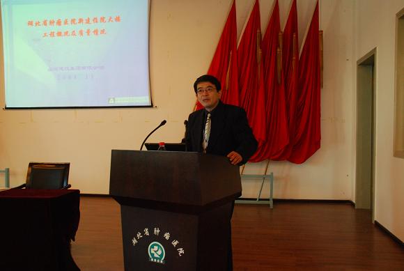 11月27日上午,山河集團舉行了項目管理經(jīng)驗交流會。會議共分為三個部分,首先全體與會人員參觀在建項目創(chuàng)業(yè)大廈,接著參觀創(chuàng)“魯班獎”項目―已竣工的省腫瘤醫(yī)院住院大樓,最后在腫瘤醫(yī)院會議廳舉行現(xiàn)場經(jīng)驗交流會。董事長程理財、黨委書記舒先厚、總經(jīng)理黃林及項目經(jīng)理、公司員工共100余人參加了大會。會議由黃林主持,項目經(jīng)理程友才、工程部經(jīng)理林中茂做了經(jīng)驗交流和創(chuàng)魯班獎的報告,程理財董事長和黃林總經(jīng)理也在會上做了重要講話。