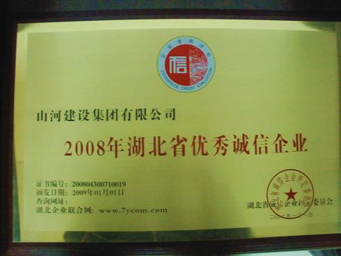 山河集團榮膺2008湖北省優秀誠信企業榮譽