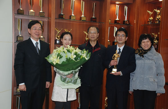 12月2日上午,武漢市建筑業協會副會長兼秘書長譚先康等一行四人蒞臨山河建設集團有限公司慰問并向集團公司喜獲魯班獎表示祝賀,還送來鮮花和獎金。